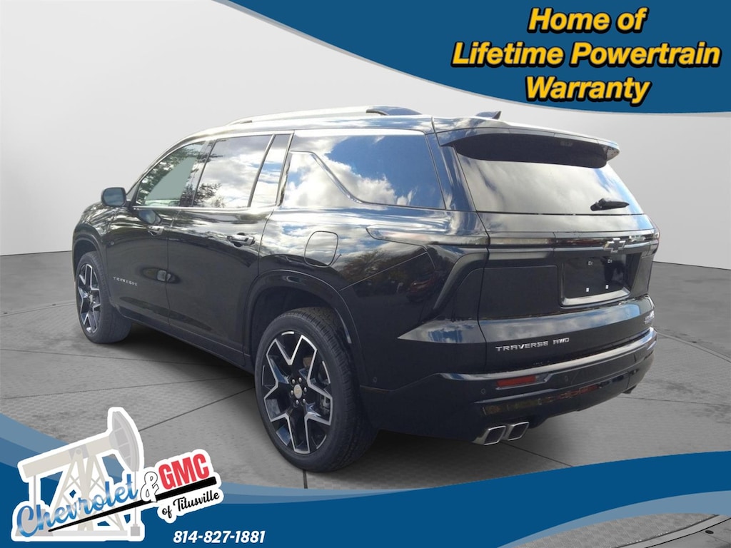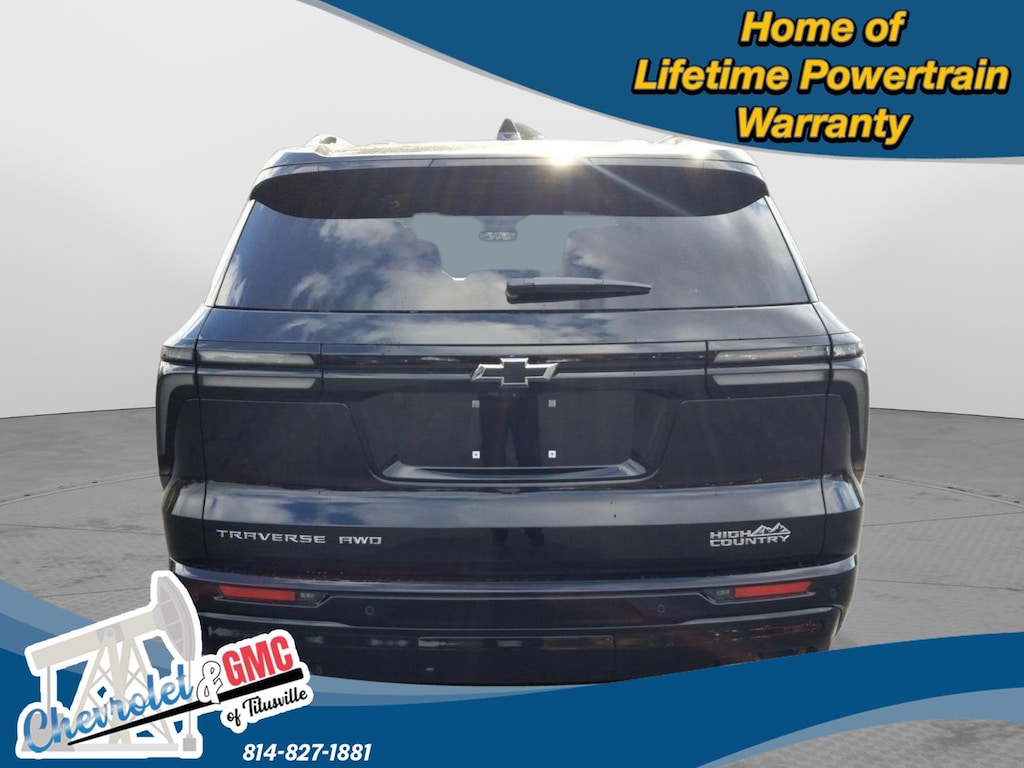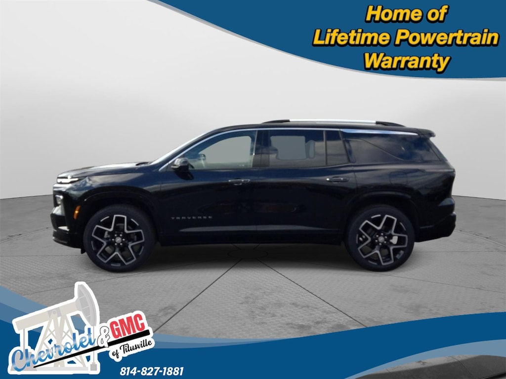 At Chevrolet and GMC of Titusville we believe that your car buying experience should be an enjoyable one. Its our goal to exceed your expectations in every way so that each and every time your family needs a car or truck, you know exactly where to go. We set out to accomplish that by staying firmly rooted in our values of integrity and professionalism in order to provide you with a truly superior customer service experience. A proud member of the Dean Auto Group, were sure youll find the quality new or used vehicle you want from the manufacturers you love! Find exactly what youre looking for at a price that makes you smile... This 2025 Chevrolet Traverse AWD High Country has a beautiful Mosaic Black Metallic exterior with High Country Jet Black with Bronze accents interior. This vehicle has 6,608 miles has been thoroughly inspected by our factory trained service technicians and has been fully reconditioned for immediate delivery. We're happy to provide this Traverse's CARFAX vehicle history report upon request as well. Carfax No Accidents! IMPORTANT PACKAGE INFORMATION Preferred Equipment Group 2LZFloor Liner Package ($365 value)1st and 2nd Row All-Weather Floor Liners3rd Row All-Weather Floor Liner Convenience GPS linked cruise control - Set it and forget it. Road trips used to be stressful, until GPS linked cruise control set the pace. Simply set the desired speed and the system uses GPS navigation data to maintain that speed without driver intervention - including slowing down for curves and anticipating hills. This can help minimize driver fatigue and improve overall fuel economy. Meet your ultimate co-pilot; GPS linked cruise control.Safety and Security Forward collision mitigation - Forward thinking. You look away for just a second and suddenly the vehicle in front of you has stopped. That's when the forward collision mitigation system comes to life. When it senses an impending impact, it will activate a combination of features to help prevent or reduce the severity of an accident. Forward collision mitigation is always looking ahead. Pedestrian impact prevention - An extra step toward safety. Pedestrians don't always stop, look, and listen, but with Pedestrian Impact Prevention, your vehicle is equipped to better see them and avoid them. This system constantly monitors the road ahead to identify and track pedestrians. It projects that image to an interior display screen, AND should an impact become likely, Pedestrian impact prevention takes steps to avoid a collision. Hands-off cruise control - Set it and forget it. Road trips used to be stressful. Cruise control only managed speed, but not distance or safety. Now with hands-off cruise control simply set your desired speed and let sensor technology maintain a safe distance between you and surrounding vehicles with minimal steering input from you. It slows you down; speeds you up and even keeps you in your own lane. Meet your ultimate co-pilot with hands-off cruise control.Technology and Telematics Apple CarPlay/Android Auto smart device wireless mirroring We value-price our vehicles to assure our customers get an easy & notable car buying experience. With every New & Pre-Owned purchase you become part of our Chevrolet and GMC of Titusville family, and being a family member has benefits: 1. Complimentary PA State Inspections for the Life of the Vehicle (dealer covers inspection fee, customer responsible for applicable sticker fees) 2. $100 gift card 3. Lifetime Powertrain Warranty (some exclusions apply) 4. Complimentary 21-point inspection and safety check for the life of the vehicle with ANY service appointment *Valid for vehicles purchased after 1/1/2025. **Offers not redeemable for cash. Due to heavily discounted market based pricing, vehicles are selling more quickly than our website updates. To verify availability on this vehicle please contact our client care team at 814-826-3375. Let us show you the difference in how we do things!