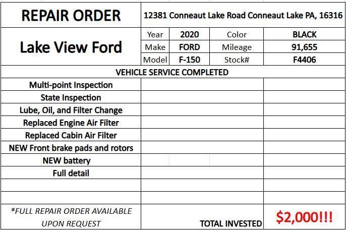 This 2020 Ford F-150 King Ranch has a beautiful Agate Black Metallic exterior with Java interior. This vehicle has 92,188 miles has been thoroughly inspected by our factory trained service technicians and has been fully reconditioned for immediate delivery. We're happy to provide this F-150's CARFAX vehicle history report upon request as well.