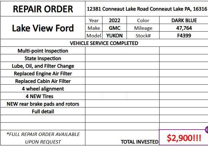 This 2022 GMC Yukon Denali has a beautiful Midnight Blue Metallic exterior with Teak/Light Shale interior. This vehicle has 47,764 miles has been thoroughly inspected by our factory trained service technicians and has been fully reconditioned for immediate delivery. We're happy to provide this Yukon's CARFAX vehicle history report upon request as well.