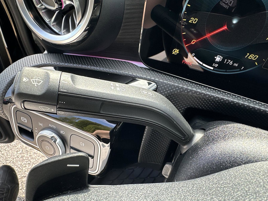 - The vehicle is equipped with a camera that displays an image of the area behind the vehicle on an interior display.