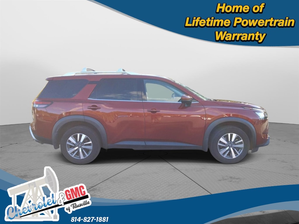At Chevrolet and GMC of Titusville we believe that your car buying experience should be an enjoyable one. Its our goal to exceed your expectations in every way so that each and every time your family needs a car or truck, you know exactly where to go. We set out to accomplish that by staying firmly rooted in our values of integrity and professionalism in order to provide you with a truly superior customer service experience. A proud member of the Dean Auto Group, were sure youll find the quality new or used vehicle you want from the manufacturers you love! Find exactly what youre looking for at a price that makes you smile... This 2024 Nissan Pathfinder SL has a beautiful Scarlet Ember exterior with Charcoal interior. This vehicle has 17,989 miles has been thoroughly inspected by our factory trained service technicians and has been fully reconditioned for immediate delivery. We're happy to provide this Pathfinder's CARFAX vehicle history report upon request as well. Carfax No Accidents! Carfax One Owner! IMPORTANT PACKAGE INFORMATION Convenience GPS linked cruise control - Set it and forget it. Road trips used to be stressful, until GPS linked cruise control set the pace. Simply set the desired speed and the system uses GPS navigation data to maintain that speed without driver intervention - including slowing down for curves and anticipating hills. This can help minimize driver fatigue and improve overall fuel economy. Meet your ultimate co-pilot; GPS linked cruise control.Safety and Security Forward collision mitigation - Forward thinking. You look away for just a second and suddenly the vehicle in front of you has stopped. That's when the forward collision mitigation system comes to life. When it senses an impending impact, it will activate a combination of features to help prevent or reduce the severity of an accident. Forward collision mitigation is always looking ahead. Pedestrian impact prevention - An extra step toward safety. Pedestrians don't always stop, look, and listen, but with Pedestrian Impact Prevention, your vehicle is equipped to better see them and avoid them. This system constantly monitors the road ahead to identify and track pedestrians. It projects that image to an interior display screen, AND should an impact become likely, Pedestrian impact prevention takes steps to avoid a collision. Hands-on cruise control. Set it and forget it. Road trips used to be stressful. Cruise control only managed speed, but not distance or safety. Now, with hands-on cruise control, simply set your desired speed and let sensor technology maintain a safe distance between you and surrounding vehicles. It slows you down; speeds you up and even keeps you in your own lane. Meet your ultimate co-pilot with hands-on cruise control.Technology and Telematics NissanConnect featuring Apple CarPlay and Android Auto smart device wireless mirroring We value-price our vehicles to assure our customers get an easy & notable car buying experience. With every New & Pre-Owned purchase you become part of our Chevrolet and GMC of Titusville family, and being a family member has benefits: 1. Complimentary PA State Inspections for the Life of the Vehicle (dealer covers inspection fee, customer responsible for applicable sticker fees) 2. $100 gift card 3. Lifetime Powertrain Warranty (some exclusions apply) 4. Complimentary 21-point inspection and safety check for the life of the vehicle with ANY service appointment *Valid for vehicles purchased after 1/1/2025. **Offers not redeemable for cash. Due to heavily discounted market based pricing, vehicles are selling more quickly than our website updates. To verify availability on this vehicle please contact our client care team at 814-826-3375. Let us show you the difference in how we do things!
